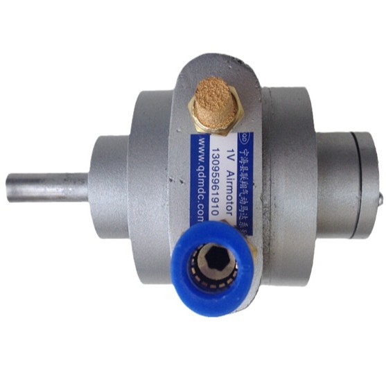 氣動馬達葉片就是靠此氣壓推力及轉子轉動后離心力的綜合作用而緊密地貼緊在定子內壁上。 壓縮空氣另一路經且孔進入相應的密封工作空間而作用在兩個葉片上,由于兩葉片伸出長度不等,就產生了轉矩差,使葉片與轉子按逆時針方向旋轉;作功后的氣體由定子上的孔C排出,剩余殘氣經孔占排出。若改變壓縮空氣輸入方向(即壓縮空氣自B孔進入,A孔和C孔排出),則可改變轉子的轉向。 圖b是徑向活塞式氣動馬達的工作原理圖。壓縮空氣經進氣口進入分配閥(又稱配氣閥)后再進入氣缸,推動活塞及連桿組件運動,再使曲軸旋轉。在曲軸旋轉的同時,帶動固定在曲軸上的分配閥同步轉動,使壓縮空氣隨著分配閥角度位置的改變而進入不同的缸內,依次推動各個活塞運動,并由各活塞及連桿帶動曲軸連續運轉,與此同時,與進氣缸相對應的氣缸則處于排氣狀態。